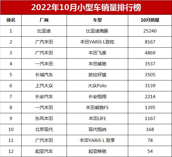 196 次2023年10月全國合資轎車銷量小型車排行榜完整版(批發量