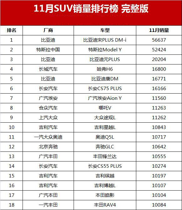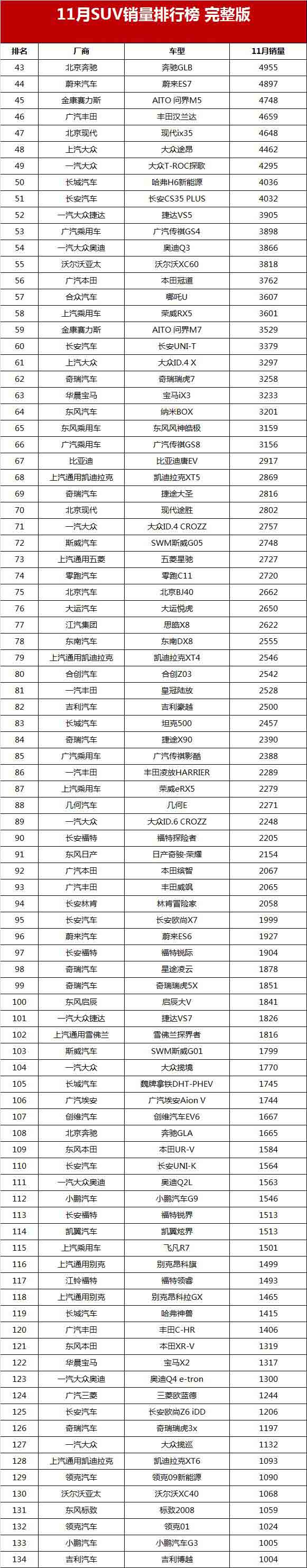 180 次2023年12月全國SUV銷量排行榜完整版(零售量