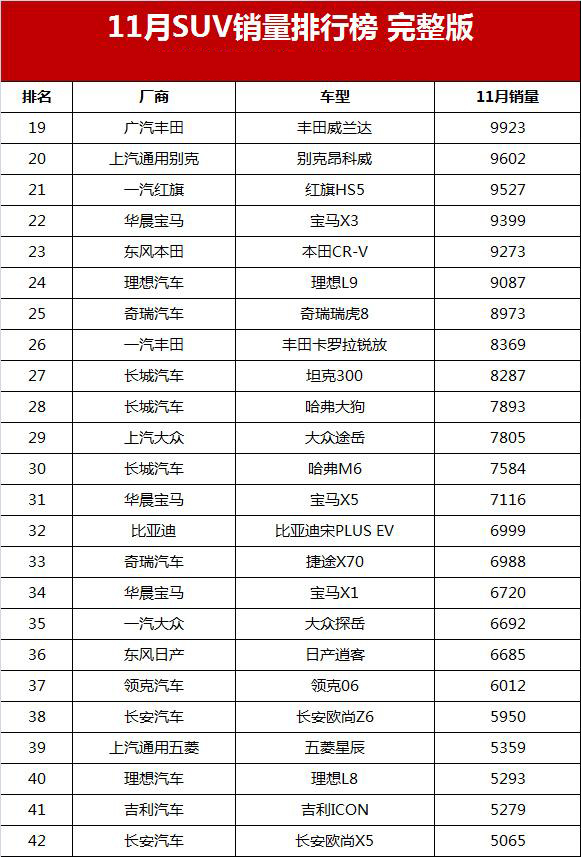 198 次2023年9月SUV銷量排行榜完整版名單(批發量