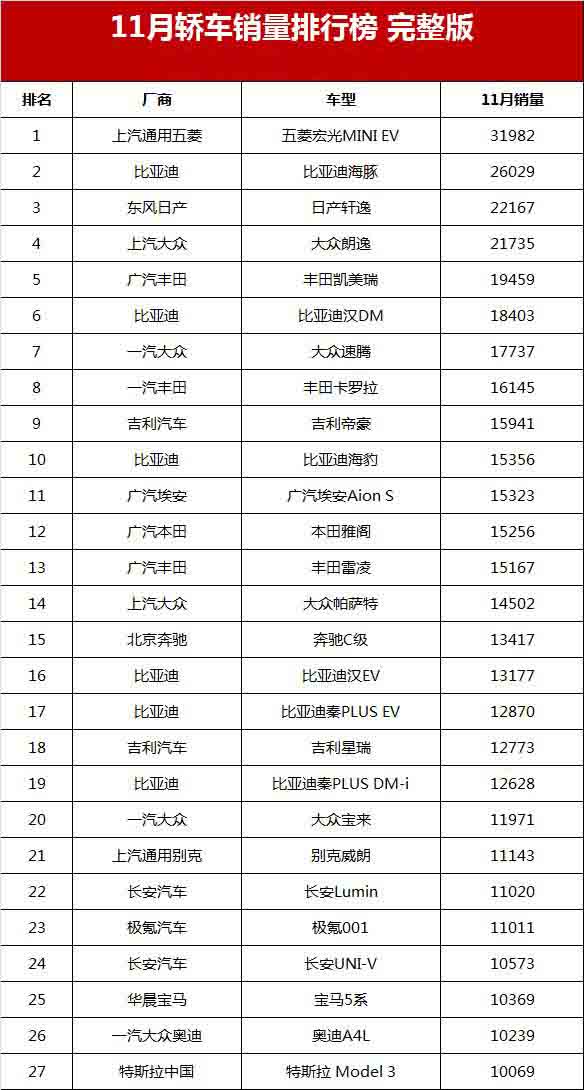 99 次2024年12月汽車銷量排行榜完整版名單(零售量