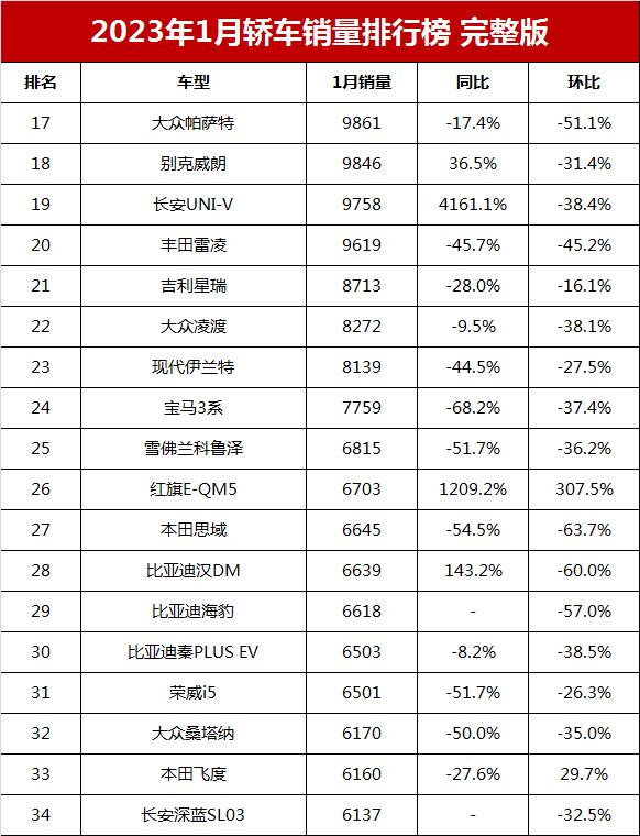 13 次2025年6月全國轎車銷量排行榜完整版(零售量