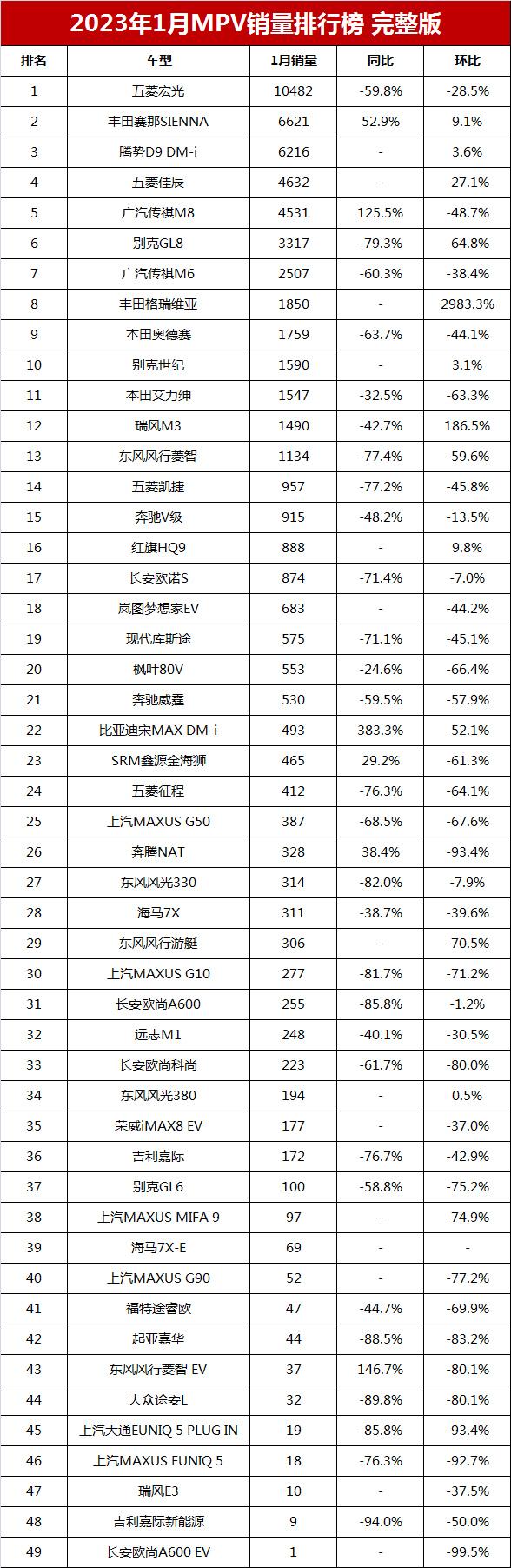 182 次2022年1月國產MPV銷量中大型車排行榜完整版名單