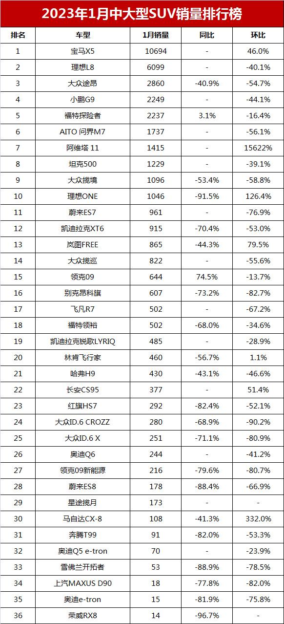 132 次2023年10月全國合資SUV銷量中大型車排行榜完整版(批發(fā)量