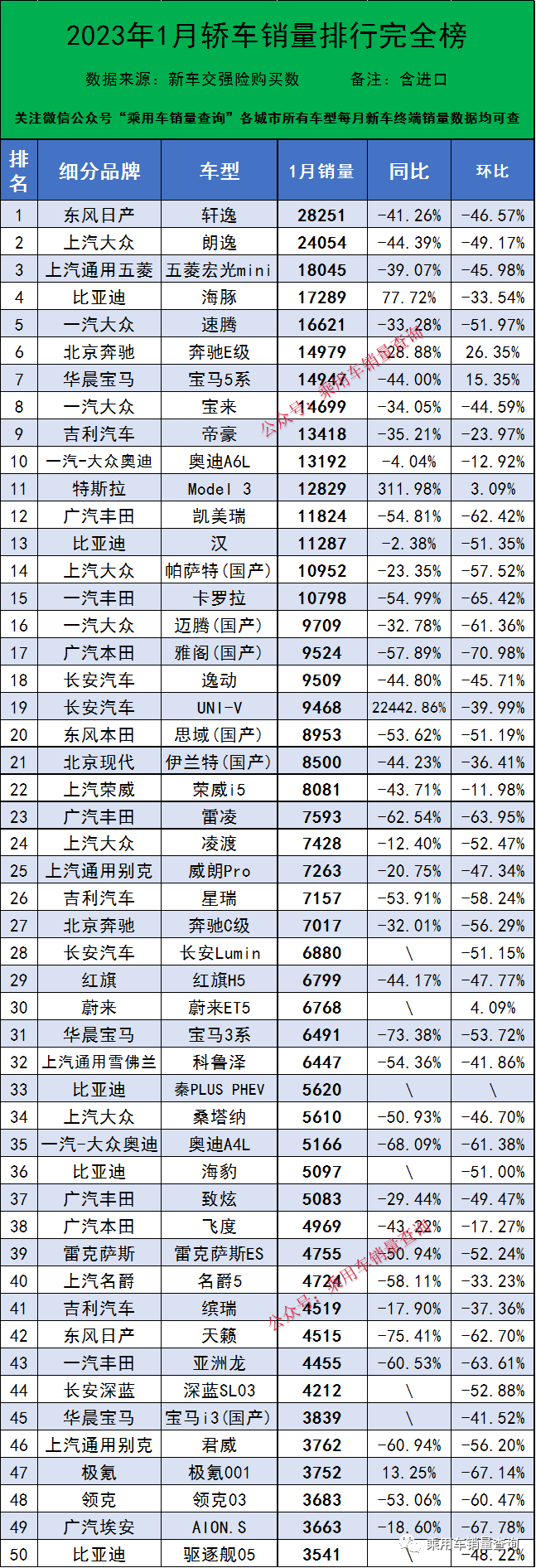 23 次2023年8月50萬以上汽車銷量排行榜完整版名單