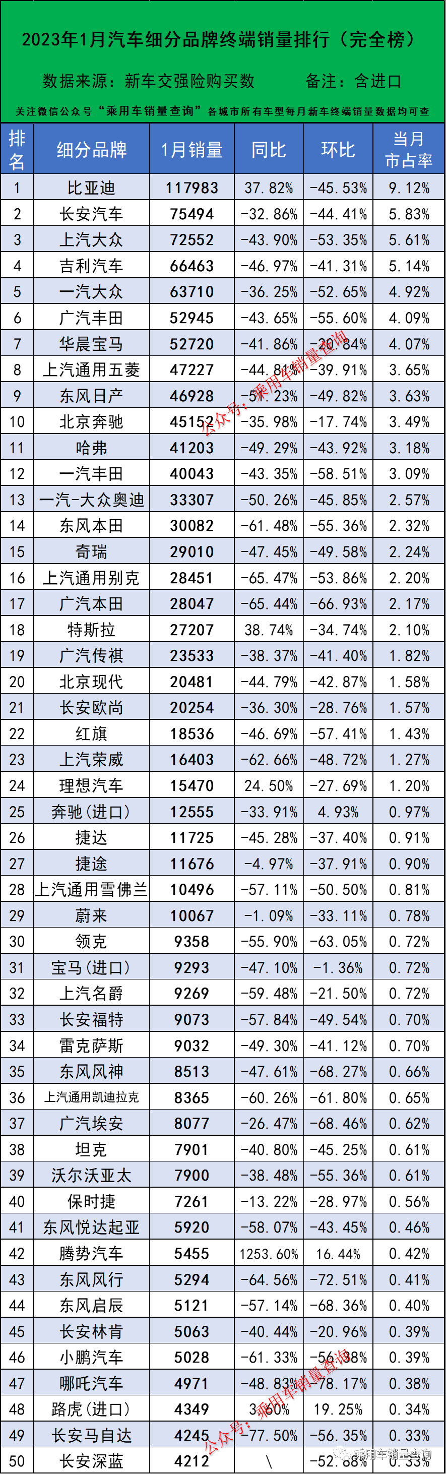 127 次2024年1月全國轎車銷量排行榜完整版(出口量