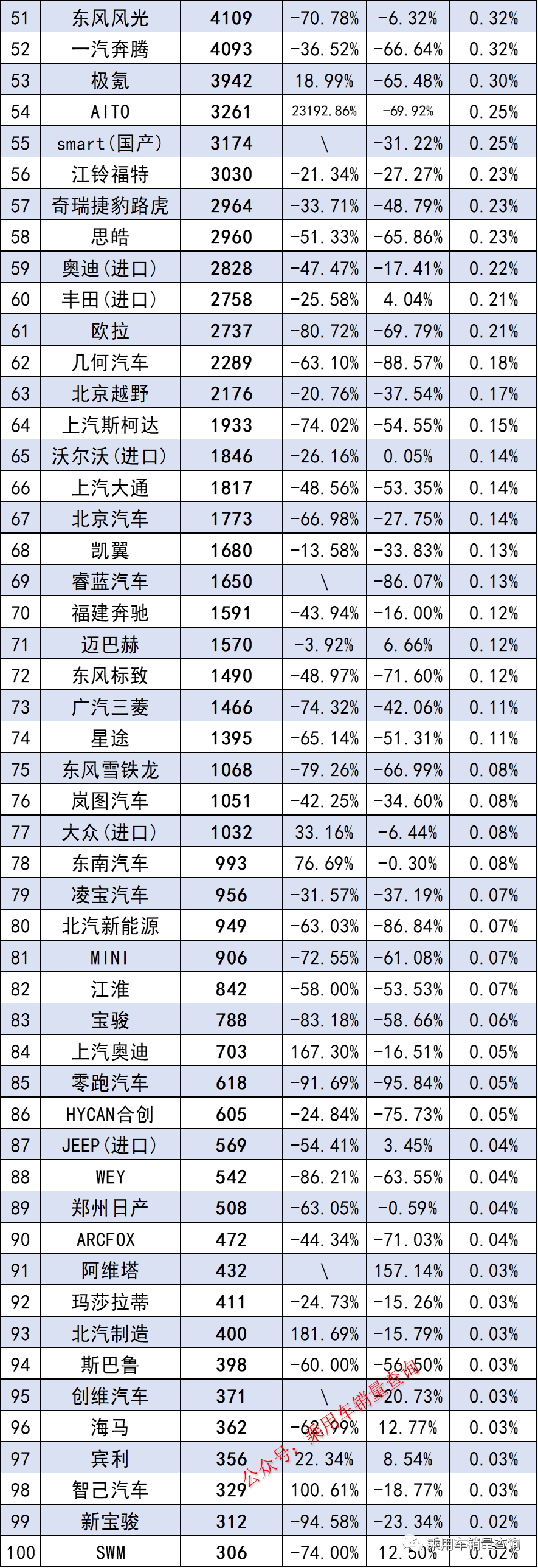 151 次2025年4月國產(chǎn)汽車銷量排行榜完整版名單(零售量