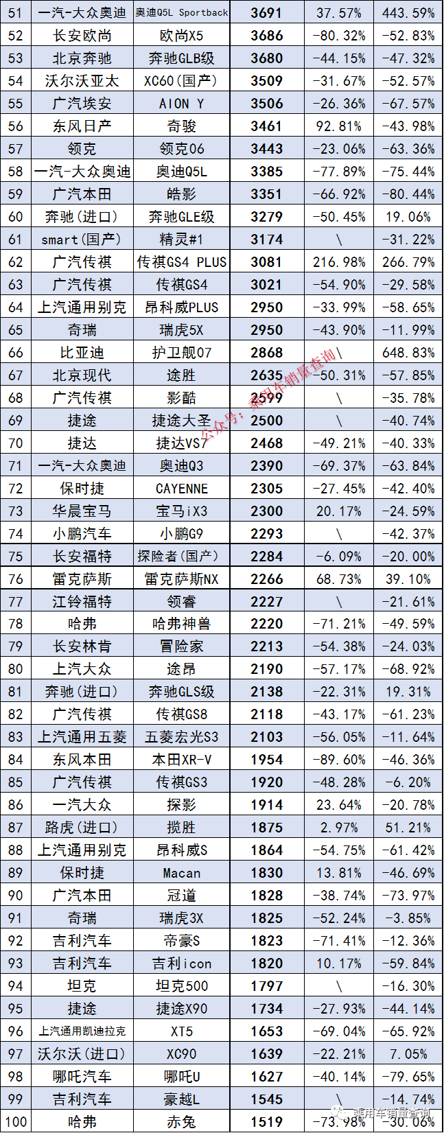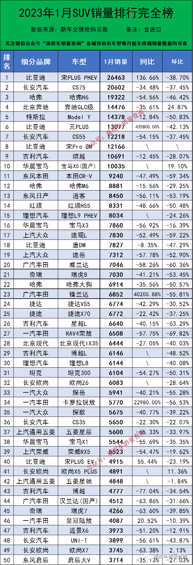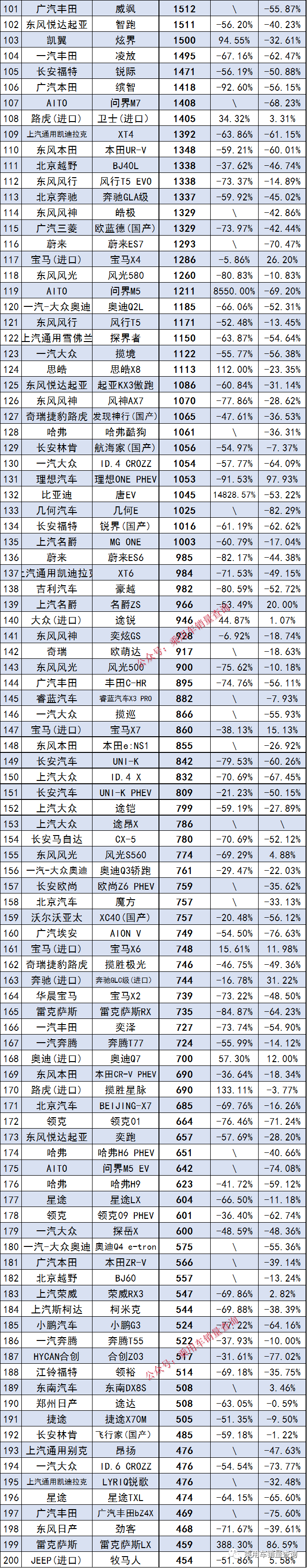 138 次2021年4月SUV銷量同比增幅排行榜完整版名單